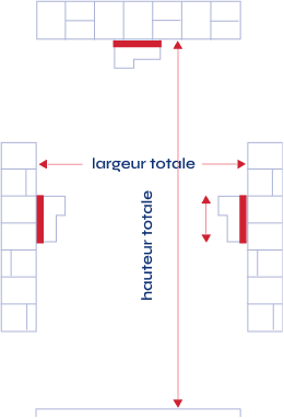 Dimensions recommandées pour une installation en tunnel. L-L x H-H mm
